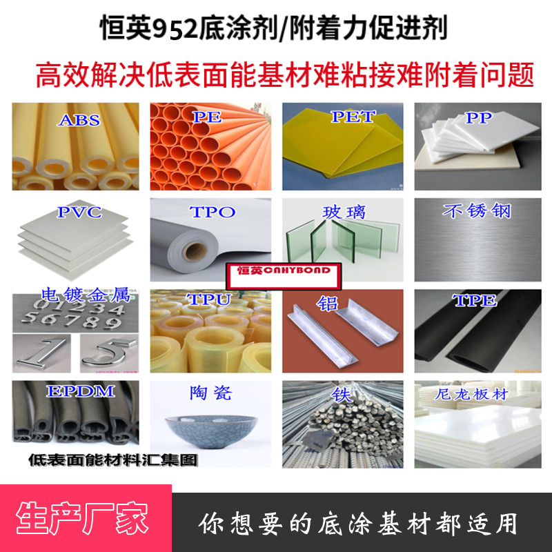 CNHYBOND952底涂剂、助粘剂、底涂剂是一种淡黄色透明液体,为了改善胶接性能,涂胶前在被粘物表面涂布的一种胶粘剂。可以产生高粘结力,耐寒(-40度),耐潮湿,并具有抗高温能力(120度),尤其和丙烯酸泡绵胶带一起使用,可以起到极好粘结效果。广泛用于涂布、汽车、火车、轮船、航空器、建筑、玻璃、电子、木材、石材产品等行业,如建筑上纱窗磁条与窗框的固定、汽车后视镜、门把手、装饰条、火车玻璃、冰箱、电饭锅、洗衣机等粘贴。